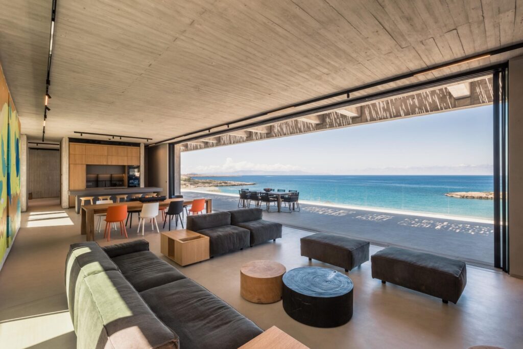 Η βίλα Beach Rock της etouri, λίγο έξω από τα Χανιά, δεν είναι μια «ακόμη μια βίλα στην Κρήτη». Το νιώθεις σαν σπίτι ανθρώπου που αγαπά το design και θέλησε να το χαράξει πάνω στον βράχο: καθαρές οριζόντιες γραμμές, τεράστια ανοίγματα προς τη θάλασσα, σκυρόδεμα και ξύλο σε ισορροπία, και στους τοίχους πίνακες και γλυπτά της γυναίκας του που του δίνουν προσωπικότητα. Το αποτέλεσμα είναι ένας χώρος που θα μπορούσες να τον δεις σε σελίδες interior, αλλά σε καλεί να κάτσεις με το μαγιό και τις φόρμες σου.