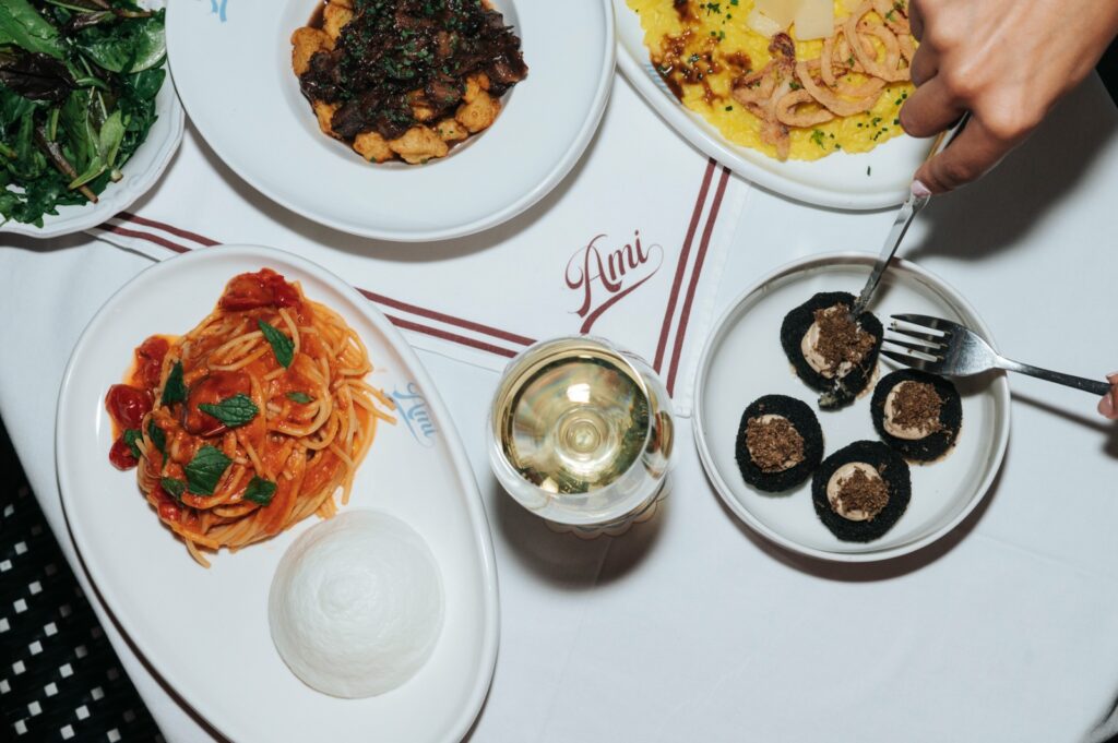 Opened in late 2022 by Giorgos Melissaris, Giorgos Kanellopoulos and Dimitris Babouris, Ami began life with a French accent as Ami Gastrothèque. In 2024 it pivoted decisively to Italy. Today, under the signature of award-winning Chef Dimos Samourakis, the kitchen presents a well-considered menu that champions simplicity, seasonality and clean flavors, executed with modern sensibility and technique that shows without shouting. The focus is clear: hand-rolled pasta, distinctive pizzas, and a handful of well-judged secondi.