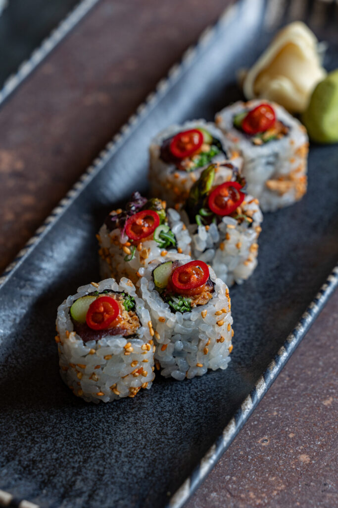The kitchen at Bungalow 7 has a cosmopolitan outlook – not in the sense of ostentatious luxury, but of an open, well-travelled palate. Many different influences converse on the plate, yet the foundations remain firmly Mediterranean: good olive oil, fresh vegetables, herbs and fish. Asian touches appear discreetly in sauces, marinades and techniques, adding brightness and intensity without overwhelming familiar flavours. The sushi menu fits naturally into this approach, built around fresh fish and playful Mediterranean accents.