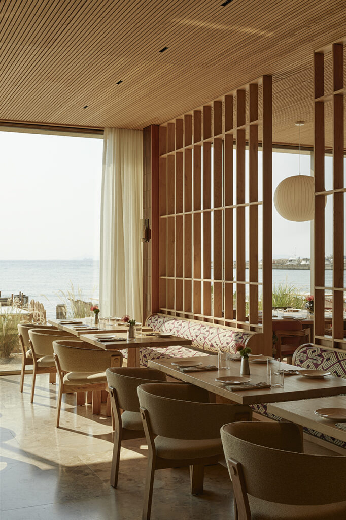 Part of the historic Asteria complex, Bungalow 7 feels like a contemporary seaside villa firmly rooted in modernism. Across roughly 2,000 square metres, enclosed and semi-open areas unfold like a sequence of rooms, with large openings, skylights and expanses of glass that bring the Saronic literally to the table. Clean lines, simple forms and a seamless flow between indoors and out set the tone.