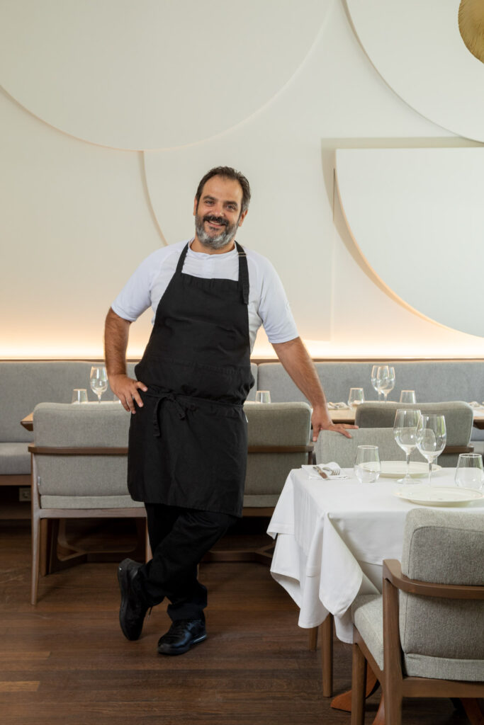 Stepping into Cookoovaya, what wins you over first isn’t the décor, but a pervasive sense of care. At the host stand, fresh flowers greet you, along with a discreetly “well-tuned” team moving through the room with the calm confidence of people who know their part. Even the uniforms, designed by Angelos Bratis, add that quiet, elegant detail that gives away a restaurant that leaves nothing to chance.
