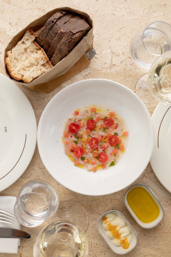 If you want to understand the chef’s hand, start with the simplest things. Their handmade bread, warm, pleasantly chewy, is kneaded daily in the kitchen. Served with excellent olive oil and butter, it’s the table’s first real statement.