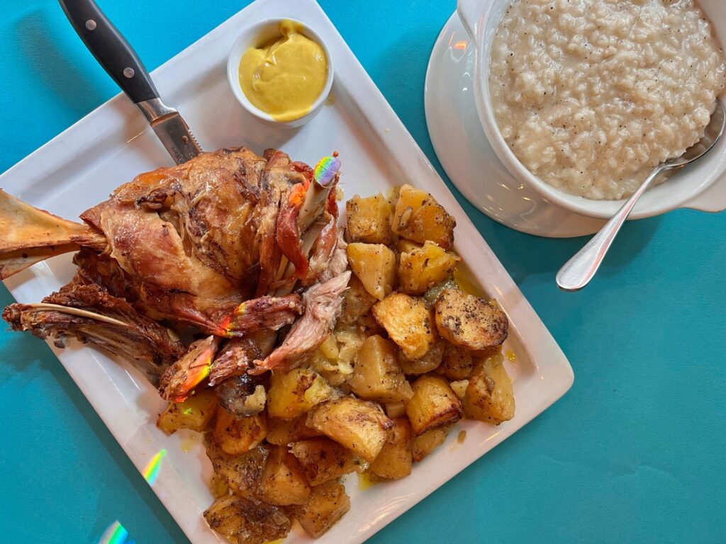 Owner Giannis Roumanos runs the charcoal grill, while the slow-cooked dishes are handled by his childhood friend Sotiris Vasilopoulos, recently back from Boston kitchens. Add mom Anastasia’s comforting specialties — soutzoukakia, cabbage rolls, papoutsakia — and you get a kitchen that looks toward the Peloponnese but hunts for great local products everywhere: rooster from Kalavryta, handmade pasta from Agrinio, cheeses from Vytina, figs and quinces straight from the fields.