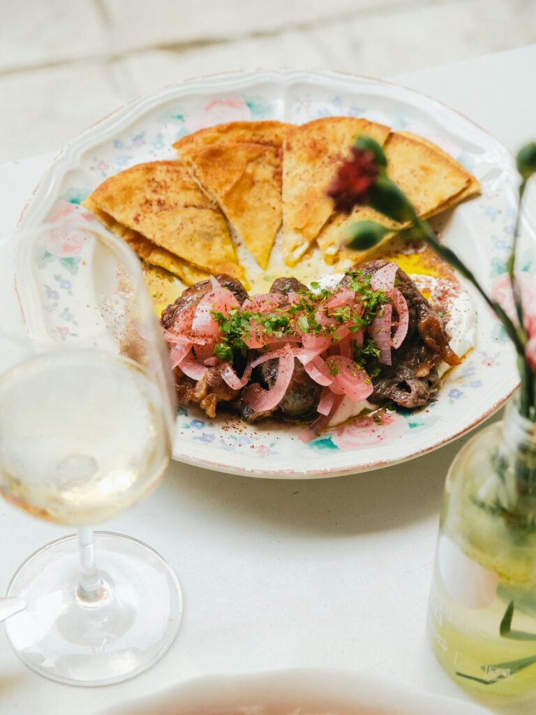 The atmosphere has an understated elegance, making it perfect before or after the theatre, for a quiet dinner, or for an after-office glass from a curated list that highlights Greek vineyards and low-intervention wines. The kitchen keeps its Greek identity front and centre: pork with leeks and celery in a celery-root avgolemono with hazelnut; hilopites in browned butter with egg and aged myzithra; or goat with couscous and arseniko “Bambouni.” Daily specials might include rooster ragù with shell pasta and Syros graviera, or oven-baked lasagna with eggplant, tomato, basil and stracciatella. Brunch has a loyal following: shakshuka eggs, trahanas with tahini and granola, oven-baked Greek omelette with sausages, and a standout “peinirli” kagianas with cured Kalamata meat.