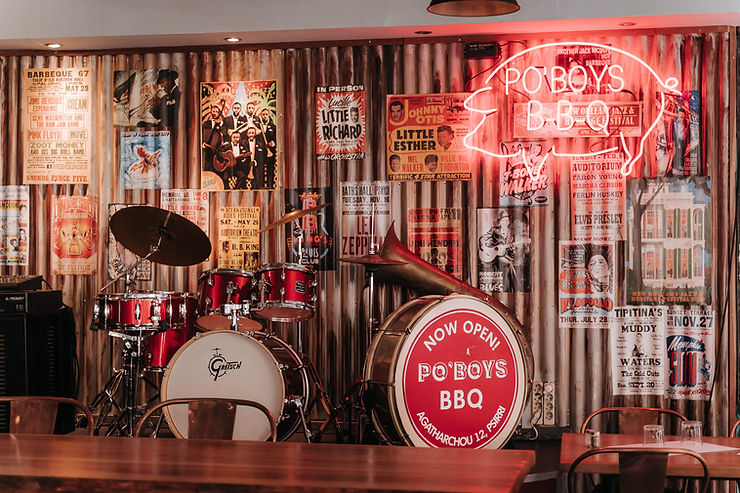 And because American culture is pervasive, the case is raising beers. Following what they say in Texas, who are not sure “if bbq was created for beer or beer for bbq”, you will find 40 labels of beers from the best Greek microbreweries along with the newly minted custom made Po’Boys lager beer on tap.