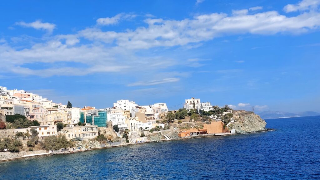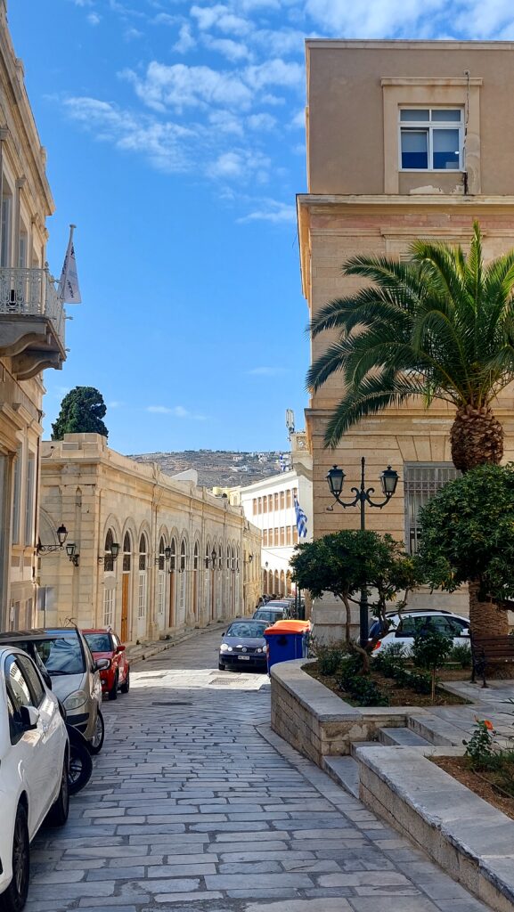 What truly makes Syros stand apart is not only that it has “beautiful buildings”. It’s that it has layers of urban life – refugee memory, Catholic tradition, industrial growth, neoclassical vision – and has kept them alive. In a single day you can walk through the Cultural Centre, step inside the Apollon Theatre, look up at the painted ceilings of its neoclassicals and end your evening in Ano Syros listening to bouzouki. It’s a town that reminds you the Cyclades are not just white cubes on a rock, but living monuments of culture – and an Aegean beauty that’s hard to put into words.
