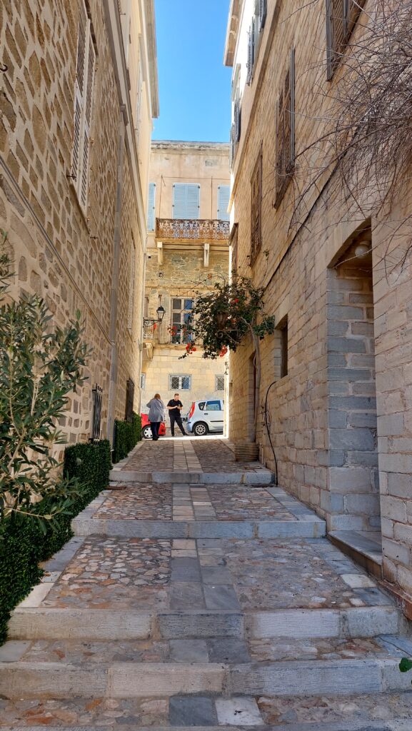 That urban class –the Syros merchant families, people with education and European references, Catholics and Orthodox living side by side– left behind something very alive: a town that doesn’t go to sleep in winter. Syros today has eight (!) amateur theatre groups, music ensembles, reading clubs – a winter cultural life that very few islands can claim. It’s how the people of Syros keep their town “high” even when there are no visitors.