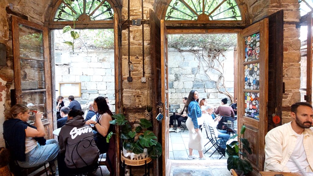 For food, it’s worth stopping at “Syriani Kouzina” for homestyle dishes, at “O Mitsos” for meat, and at the old café “I Nisiotissa” in the lane of Ermoupoli, where in 2025 the ERT (National TV) series “The Great Chimera” was partly filmed (the eponymous novel by M. Karagatsis has strong links to Syros, since that cosmopolitan, Greco-Italian, island atmosphere he describes is very close to the spirit of Ermoupoli’s merchant class).