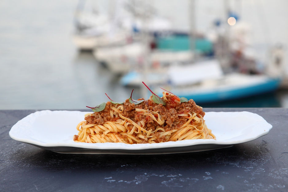 Συνυφασμένος με το ψάρι και τη θαλασσινή μαγειρική, ο Λευτέρης Λαζάρου το καλοκαίρι του 2018 στην την ταράτσα του «βασιλείου» του στο Μικρολίμανοστο άνοιξε το open air tapas bar Bites & Wine, στο χώρο που πλέον λειτουργεί για private events. Εκτός από την ασύγκριτη θέα στα ιστιοπλοϊκά και την παραλιακή γραμμή, είχε στήσει ένα μενού με βάση το κρέας, απ΄όπου και αυτό το αρωματικό σπαγγέτι Cipriani.